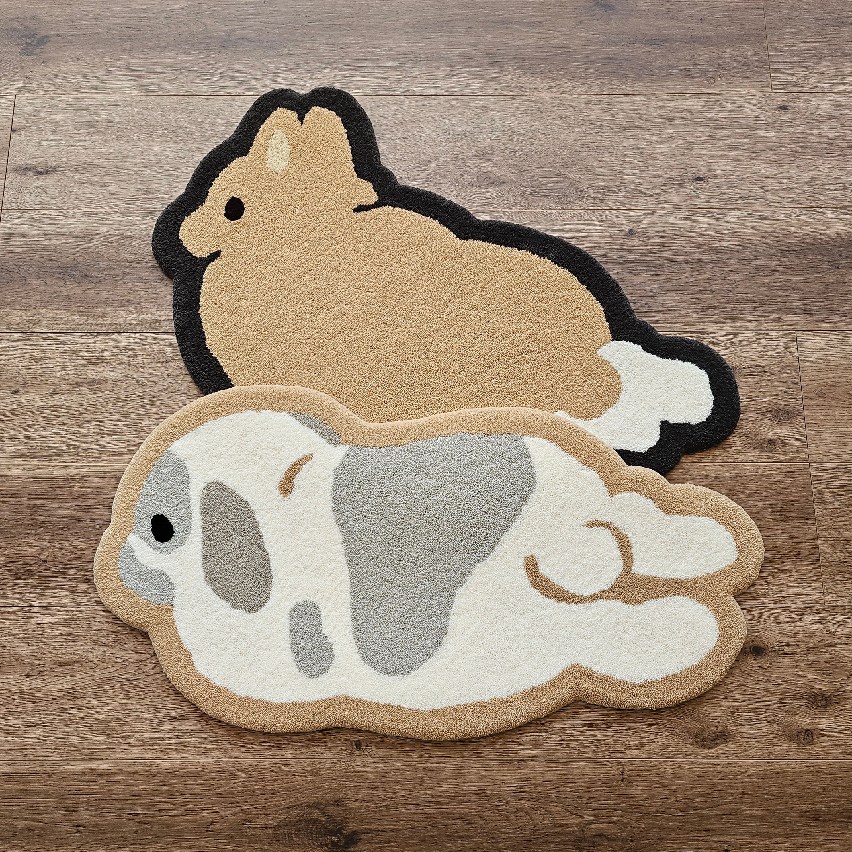 後ろ足を伸ばして寛ぐ姿がかわいいフロアラグです。